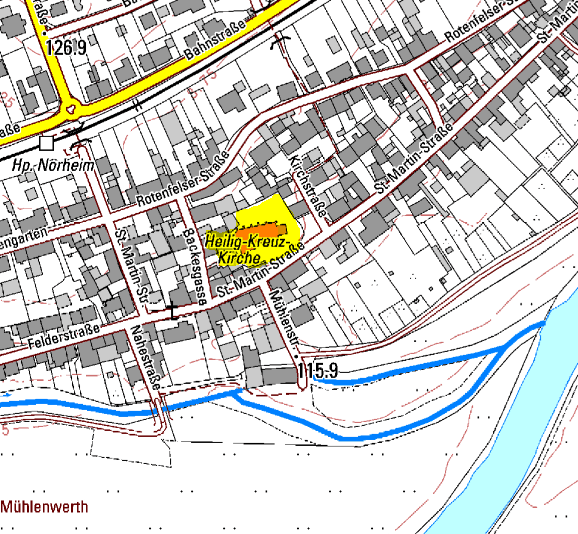 Die Kirche Kreuzerhöhung liegt zentral im Ortskern von Norheim. Die genaue Anschrift lautet: