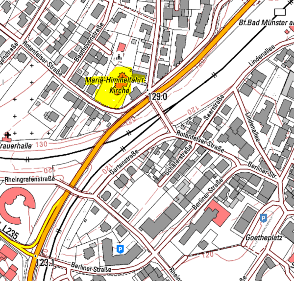 Die Kirche Maria Himmelfahrt liegt im Bad Kreuznacher Stadtteil Bad Münster a.St.-Ebernburg.